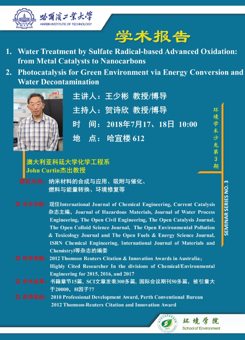 题目1:Water Treatment by Sulfate Radical-based Advanced Oxidation: from Metal Catalysts to Nanocarbons