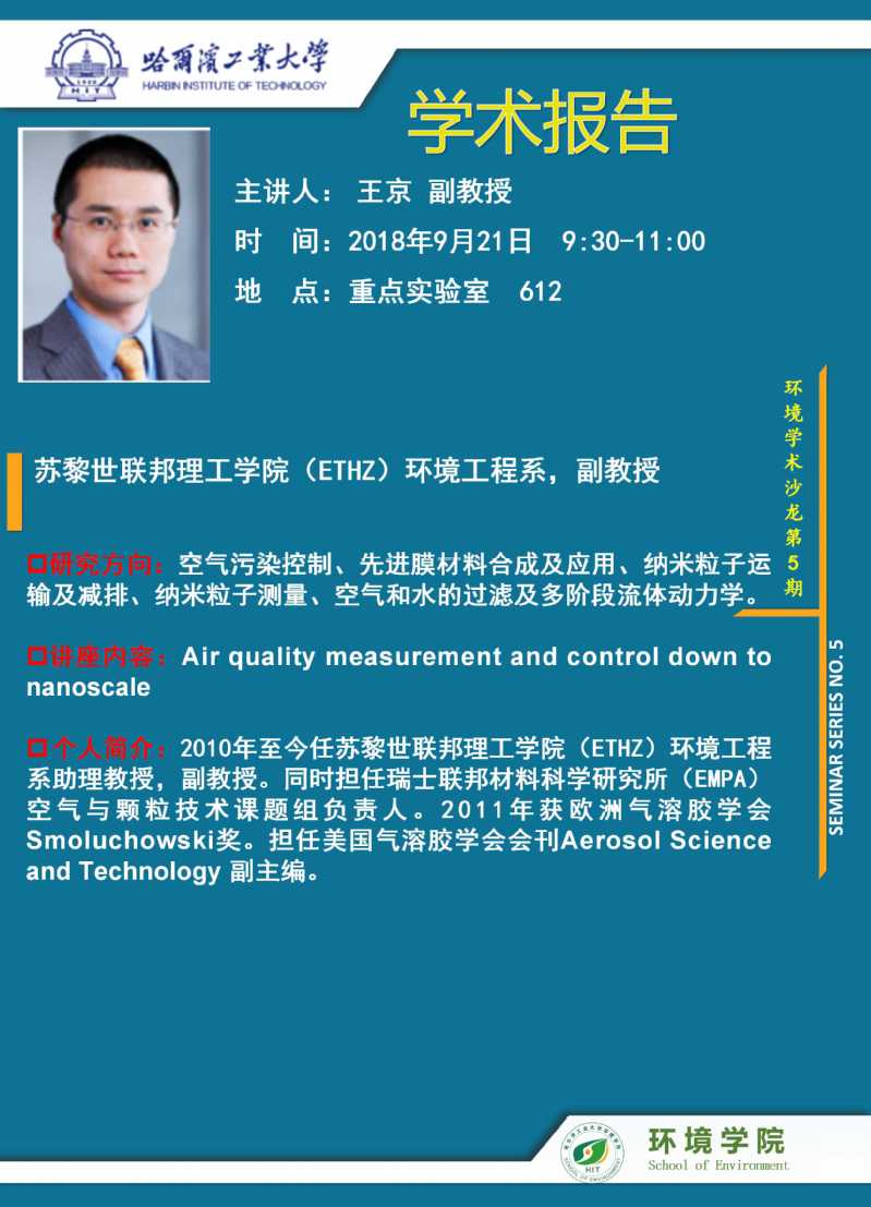 应a片动画 /城市水资源与水环境国家重点实验室马军教授和何旭讲师邀请,瑞士联邦理工学院(ETHZ)王京教授将于2018年9月21日访问a片动画 ,并作学术报告,欢迎全校感兴趣的师生参加。学术讲座信息如下: