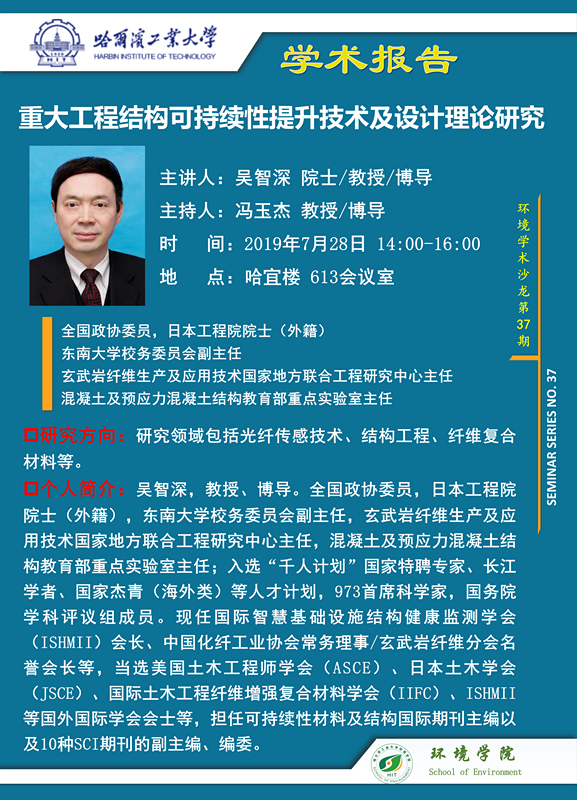 全国政协委员,日本工程院外籍院士,东南大学校务委员会副主任,玄武岩纤维生产及应用技术国家地方联合工程研究中心主任,混凝土及预应力混凝土结构教育部重点实验室主任吴智深教授将于2019年7月28日访问a片动画 并进行学术交流,欢迎感兴趣的师生参加。