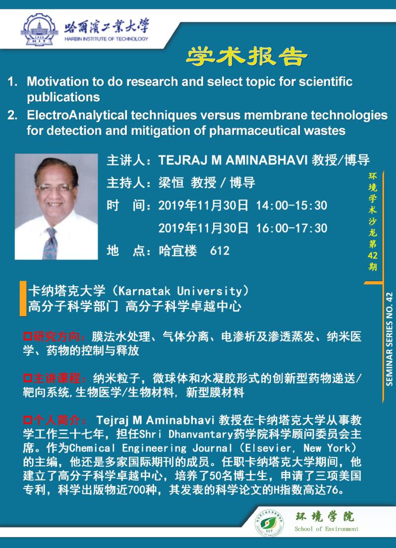 主 讲 人:Tejraj M Aminabhavi 教授/博导