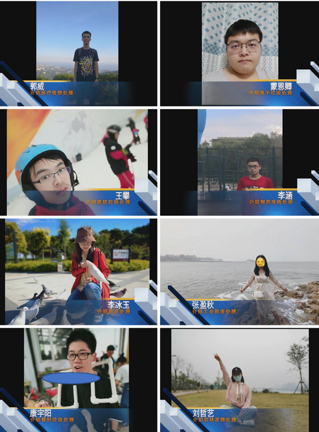 根据各位教师的研究方向及主讲课程特色,优化配置形成了水污染控制组、大气污染控制组、固废污染控制组、生态治理组及可持续发展组,并将全系52位同学随机分配到上述5组。相较于传统的生产实习,本次“云端”实习分为三阶段进行。第一阶段,各小组指导教师根据行业发展特色,总结了相关领域的经典技术、创新性技术及集成技术,要求学生按方向进行相关工艺机理、工艺特征、运行参数、工程实践等方面的学习;第二阶段,各小组邀请指导教师及企业专家进行多次讨论、修改,并制作展示视频,5个小组通过集成,形成了5部“环境工程技术微电影”(每部时长1小时左右);第三阶段,组织云端答辩,分工分角色凝练展示,全体毕业实习指导教师参与点评,实习过程中,还注重了课程思政要素的融入,通过实习,增强了学生的时代责任感、使命感和爱国热情。如水污染控制组制作的视频,展示了涵盖给水处理、城市污水处理、工业废水处理与资源化等多方面内容的典型处理工艺,分区域案例比较分析,数据挖掘等工作,并结合疫情讨论水卫生安全的关键技术要点,从专业的角度阐述了如何同舟共济,共克时坚;固废污染控制组以固体废物处理处置与资源化为主题,涵盖了餐厨垃圾、污泥、农林废物、建筑垃圾、工矿业废物、电子垃圾、医疗废物、制药废渣的处理处置与资源化的典型处理工艺、典型处理流程的案例等。总体上,5个小组的同学活跃云端,积极参加相关学习及创作。展示了a片动画 环工学子的的自主学习、组织能力及团队协作能力,全面展现了a片动画 环工学子的风采。