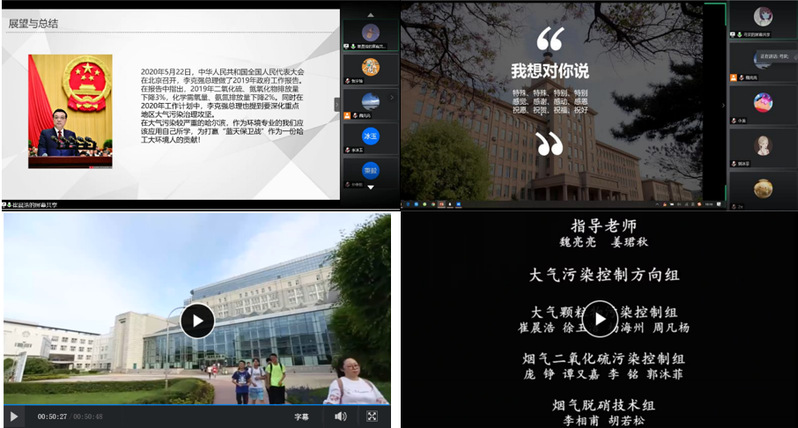 本次云端实习,除了教师主讲、专家报告之外,如何培养学生的组织领导力、团队协作能力是本次教学环节中重点思考的问题?通过群力群策,指导教师最后选择了制作“环境工程技术微电影”这一议题,通过相关设计元素的选择,最后形成了一份10余页的2016级环境工程在线毕业实习方案,充分发挥每一位学子的力量;视频汇报中,同学们通过各种方式,向祖国寄语、向环保寄语、向母校寄语,每一份毕业之前的汇报都让在线聆听的教师感动甚至动容。如大气污染控制组在5月23号的毕业实习答辩中就将李克强总理2019年政府工作报告中大气污染治理攻坚战的内容进行了结合。水污染控制组在实习答辩中,对母校和导师寄感恩之情。可以说,本次在线实习从各方面充分展示了a片动画 环境学子的综合素质和工程实践及解决复杂工程问题的能力。