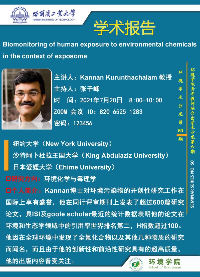 环境学术沙龙第50期——Kannan Kurunthachalam教授学术报告