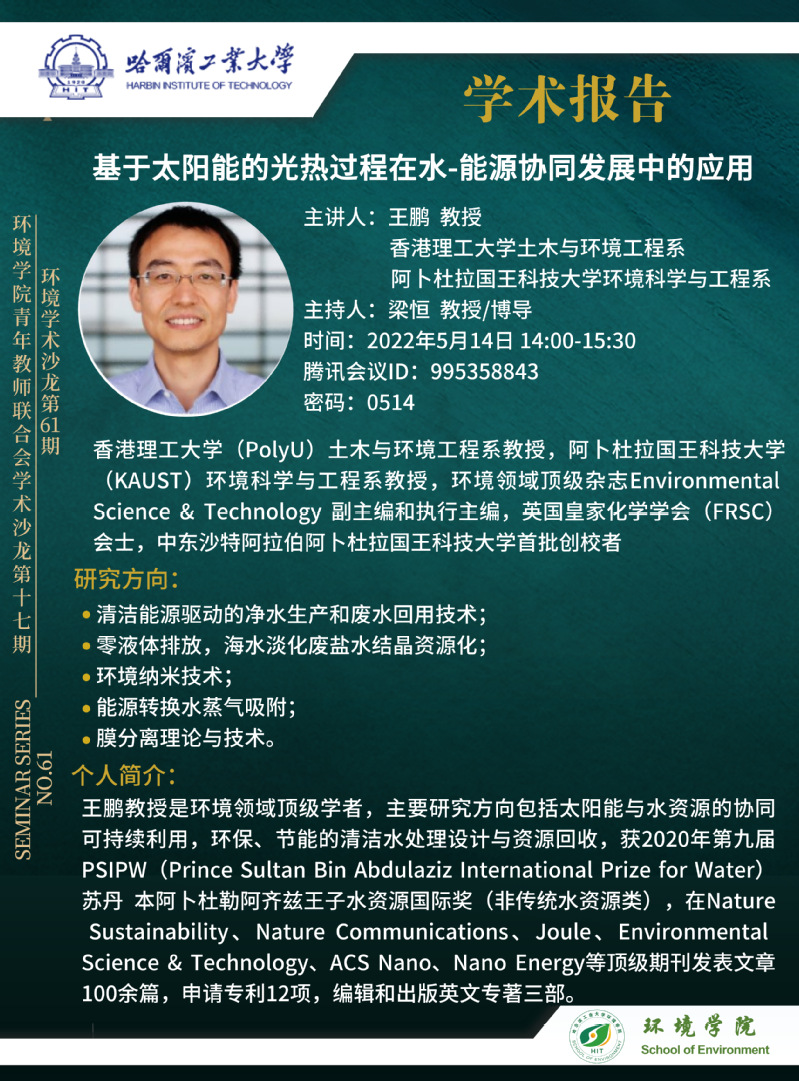 报告题目:基于太阳能的光热过程在水-能源协同发展中的应用