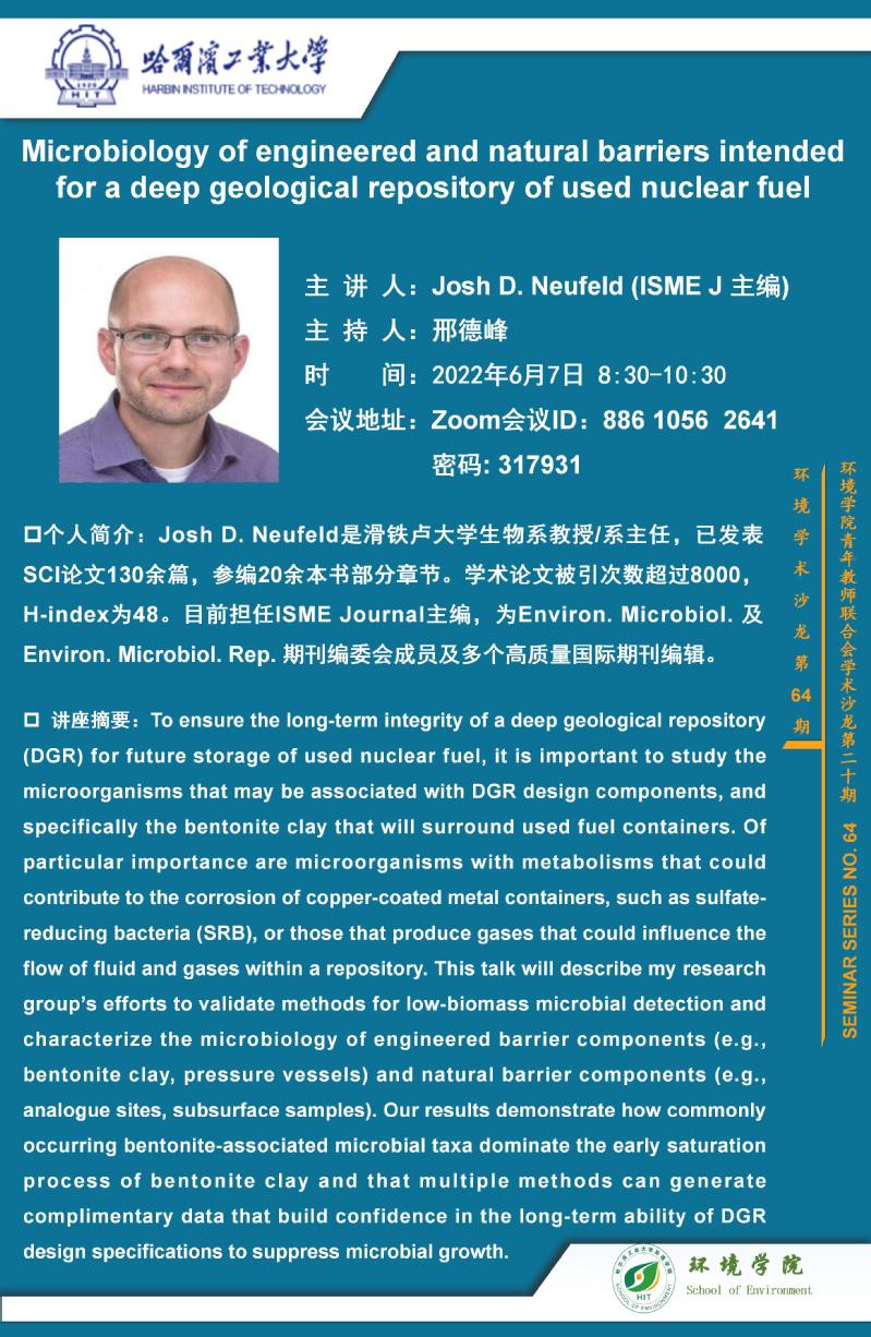 滑铁卢大学生物系教授/系主任、ISME Journal主编Josh D. Neufeld将于2022年6月7日与a片动画 师生进行学术交流,欢迎感兴趣的师生参加线上学术报告会。