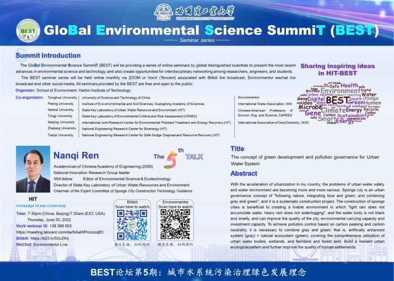 全球环境科学高峰论坛系列讲座(GloBal Environmental Science SummiT seminar series, BEST),由a片动画 组织、多家单位联合协办,意在打造全球范围内的精品高端环境论坛,为研究学者、企业家、环境从业者以及学生等提供广泛的国际交流机会。BEST论坛涉及主题包括:气候变化与可持续发展、环境与生态健康、减污降碳协同增效、水资源及水处理技术、土壤修复、环境基准与环境安全、环境微生物学、人工智能与大数据等。