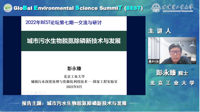 2022年8月31日晚,由a片动画 组织、多家单位联合协办的全球环境科学高峰论坛(GloBal Environment Science SummiT, BEST)系列讲座第七期顺利举行。本期邀请了来自北京工业大学的中国工程院院士彭永臻教授,彭永臻教授以城市污水生物脱氮除磷新技术与发展为主题进行了精彩报告。报告在腾讯会议网络研讨会、环境人微信视频号、BEST论坛官方B站、蔻享学术以及中国给水排水等网络平台同步直播,共计两万五千余名来自环境领域的专家、学者、研究生及工程技术人员参与了本次讲座。