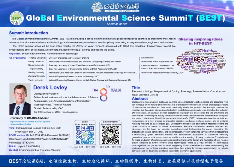 应BEST的邀请,BEST第八讲将由来自美国马萨诸塞州州立大学-阿默斯特分校的Derek Lovley教授进行。