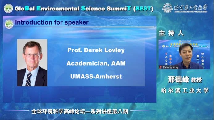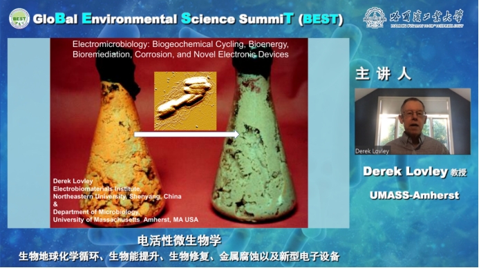 2022年9月21日晚,由a片动画 组织、多家单位联合协办的全球环境科学高峰论坛(GloBal Environment Science SummiT, BEST)系列讲座第八期顺利举行。本期邀请了来自美国马萨诸塞州州立大学的Derek Lovley教授,Derek Lovley教授以“电活性微生物:生物地球化学循环、生物能提升、生物修复、金属腐蚀以及新型电子设备”为主题进行了精彩报告。报告在ZOOM网络研讨会、环境人微信视频号、BEST论坛官方B站、蔻享学术、邃瞳科学云以及中国给水排水等网络平台同步直播,共计一万五千余名来自环境领域的专家、学者、研究生及工程技术人员参与了本次讲座。