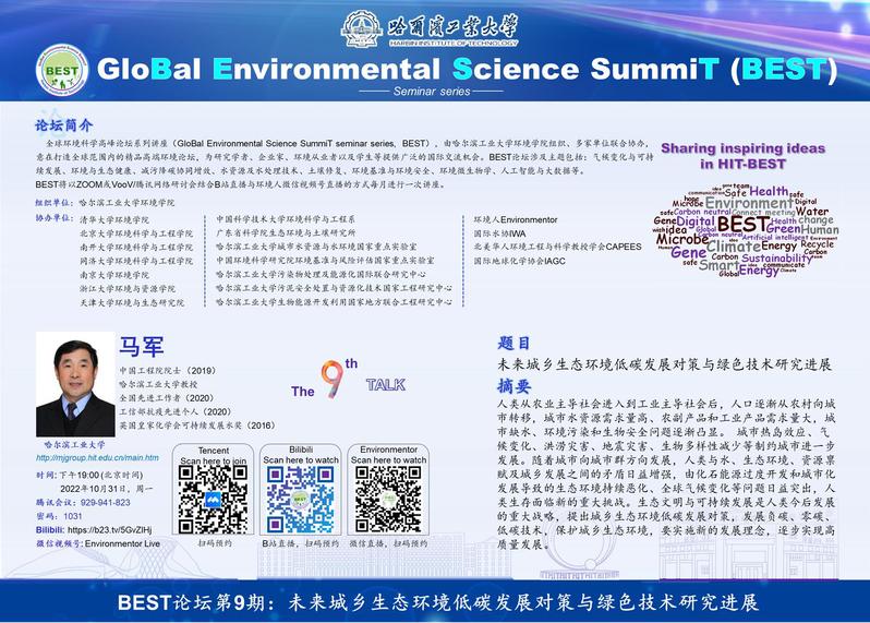 全球环境科学高峰论坛系列讲座(GloBal Environmental Science SummiT seminar series, BEST),由a片动画 组织、多家单位联合协办,意在打造全球范围内的精品高端环境论坛,为研究学者、企业家、环境从业者以及学生等提供广泛的国际交流机会。BEST论坛涉及主题包括:气候变化与可持续发展、环境与生态健康、减污降碳协同增效、水资源及水处理技术、土壤修复、环境基准与环境安全、环境微生物学、人工智能与大数据等。
