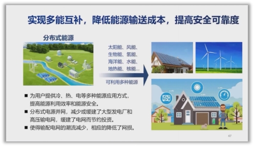 其次,可以由集中式的能源网络模式向分布式能源模式的方向发展。传统的中央能源供应系统通过集中优化配置资源的方式实现能源的综合利用,但存在能源单向交换、长距离输送的线路损耗、无功补偿等问题;通过太阳能、风能、生物能、氢能等多种能源互补,就地完成能源供给,减少长距离输配成本,同时多能源供应链提高了能源利用率与能源安全。