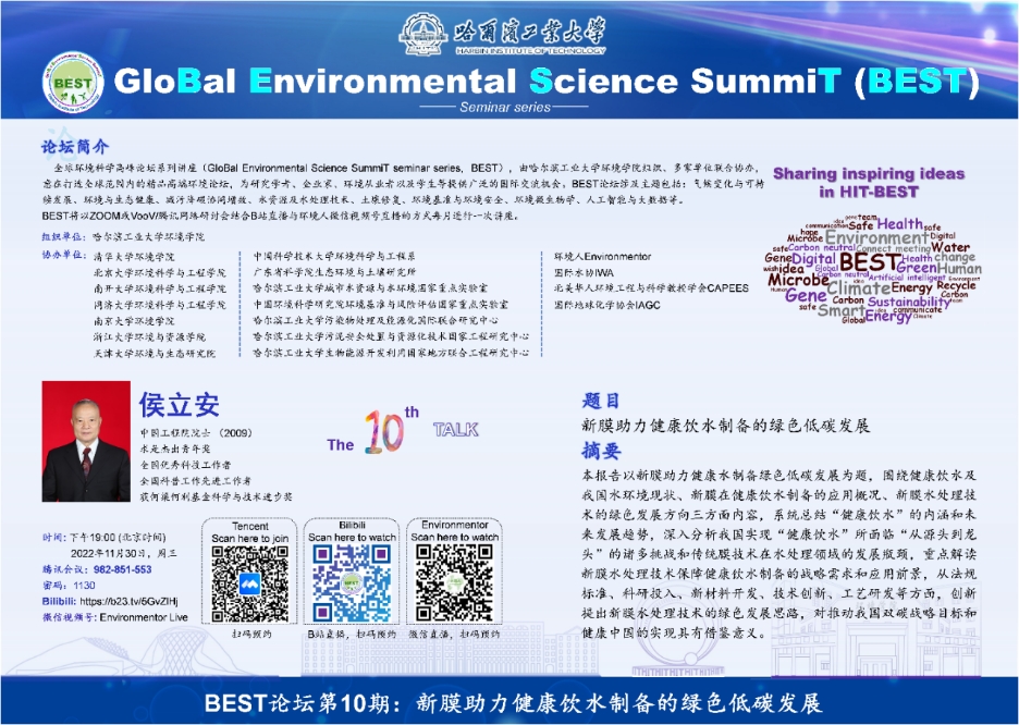 BEST的邀请,BEST第十讲将由中国工程院院士侯立安正高级工程师进行
