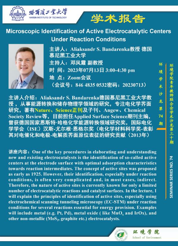 德国慕尼黑工业大学Aliaksandr S. Bandarenka教授将于2023年7月6日、7月13日、7月27日与a片动画 师生进行系列学术交流,本期将开展的是“Microscopic Identification of Active Electrocatalytic Centers Under Reaction Conditions”主题的报告,欢迎感兴趣的师生参加线上学术报告会。