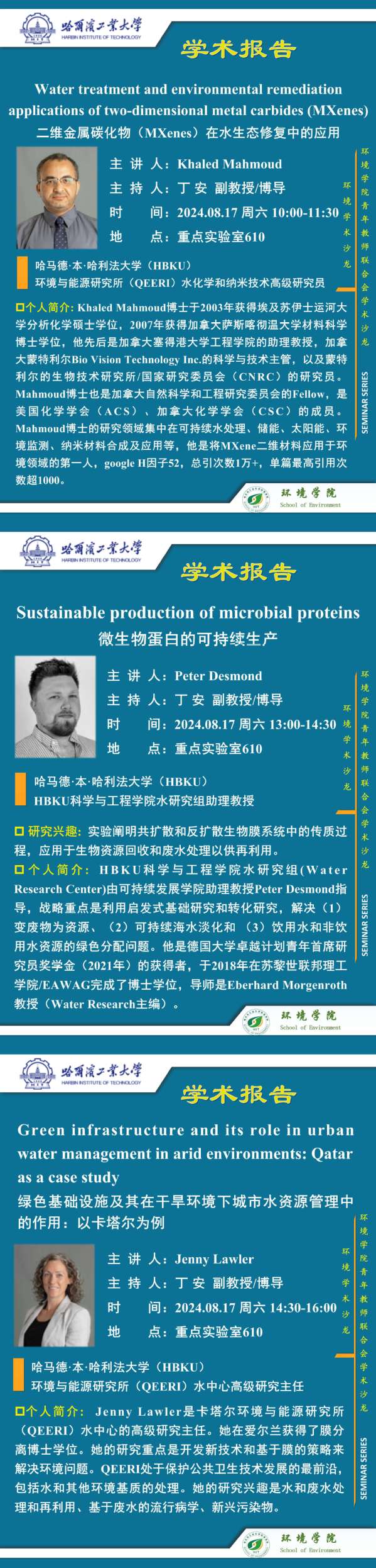 主 讲 人:Khaled Mahmoud研究员、Peter Desmond助理教授、Jenny Lawler主任