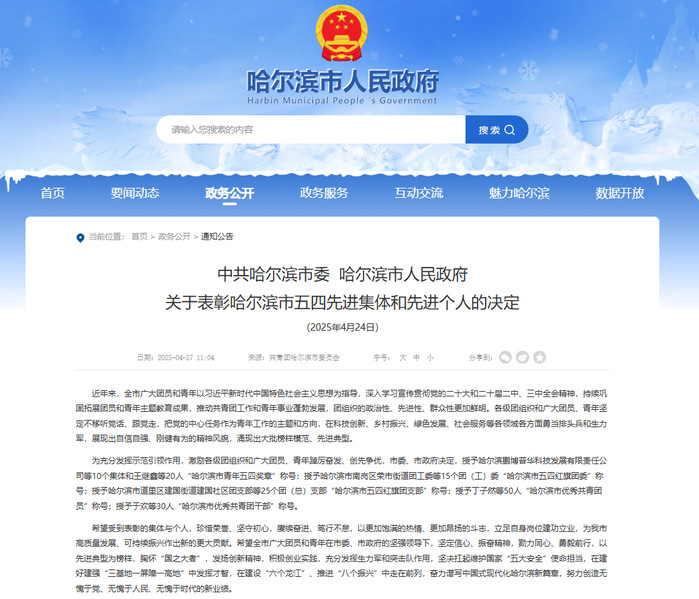 近日,哈尔滨市五四先进集体和先进个人表彰名单公布。a片动画 白朗明教授荣获“哈尔滨市青年五四奖章”称号。
