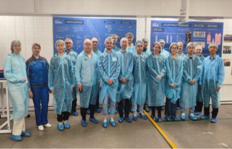 第一天,团队参观了“Legend of Baikal”贝加尔湖矿泉水厂,了解了水资源开发与利用情况。水厂工作人员带领访问团队参观了水源地采集区及保护区,重点了解了企业如何在合规开采与生态保护间达成平衡,解析“天然水源直接灌装”模式的技术可行性与环境可持续性。团队实地考察了封闭式自动化生产线,学习了深层湖水的预处理技术及不同规格产品的差异化灌装工艺。