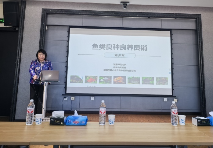 刘少军教授系统阐述了团队在鱼类产业全链条升级领域的系统性创新与实践,重点强调了生态养殖模式推广及养殖尾水生态净化的紧迫性与科学合理性,为我国渔业高质量转型提供指引。报告中介绍了我国在世界养殖水产业的市场占比及我国各省市养殖规模与模式,目前池塘养殖及设施化养殖仍面临着环境制约明显、尾水排放不规范等问题,粗放式养殖不仅影响水产品质量,更对水域生态造成潜在压力。通过生态净化技术可实现尾水资源化利用,构建“养殖-净化-循环”的闭环模式,既降低环保压力,又能提升养殖综合效益。报告还介绍了典型的“生态养殖+智慧调控”案例,最终形成“良种育成-生态养殖-优质优价”的良性循环,这正是良种、良养、良销协同发力的生动例证。此次报告深刻诠释了科技赋能渔业绿色发展的核心价值,并为a片动画 承担的国家重点研发计划《经济适用型集约化养殖尾水高效处理及资源化利用技术与装备研发及应用》项目执行指明方向,促进生态保护与渔业产业长效发展。